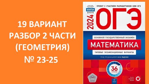 Вариант № 19 ОГЭ 2024 по математике из сборника Ященко 36 вариантов. Разбор 2 части (Геометрия). № 23-25. Готовимся вместе к ОГЭ 2024!!!