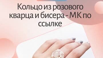 Кольцо из розового кварца и чешского бисера. МК по ссылке в описании
