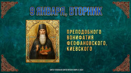 Преподобного Вонифатия Феофановского, Киевского. 9 января 2024 г. Православный календарь
