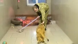 Олег Зубков убирает, а Симба наблюдает и рассказывает истории! Очень разговорчив