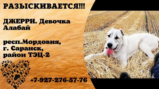 Пропала собака! ДЖЕРРИ. Девочка, алабай. респ.Мордовия, г.Саранск