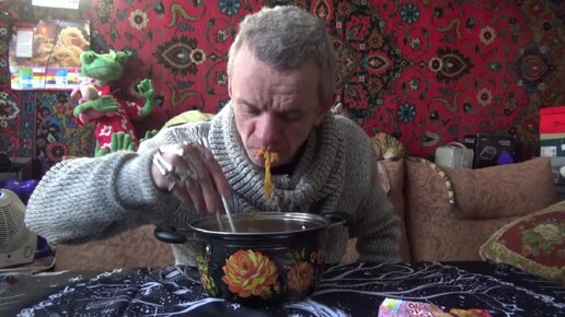 обжор мукбанг две пачки лапши buldak carbonara и суп куриный