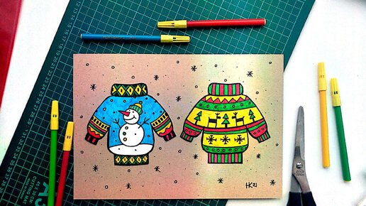 ПРОСТОЙ РИСУНОК—АППЛИКАЦИЯ. СПРАВИТСЯ РЕБЕНОК. ТЁПЛЫЕ СВИТЕРЫ.