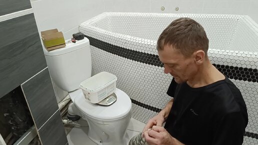 Получили посылку от брата. Затирка швов мозаики в самодельной ванной эпоксидной затиркой.