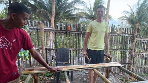 Поставили с папой и сестрой Найви новые ворота. Юрчик играет с цементом, как филиппинцы забивают гвозди в бамбук?