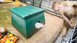Люська ЗНАКОМИТСЯ с КРОЛИКАМИ и думает забирать ли у них морковку и яблоки или пусть едят)))