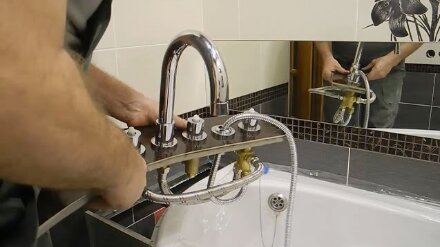 Установка прогрессивного горизонтального смесителя для ванной ч..2