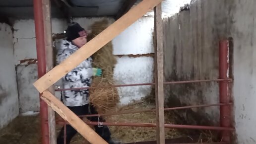 09.01.2024 год. Уборка у коз. Кормление. Козлята впервые увидели много снега