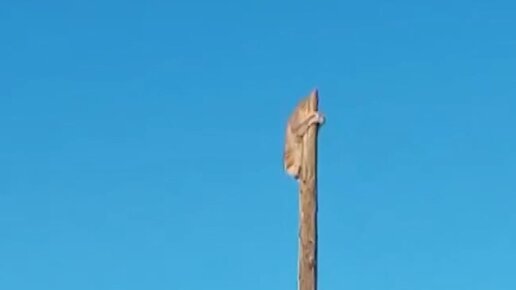 В Приморье рысь забралась на столб, спасаясь от сторожевой собаки