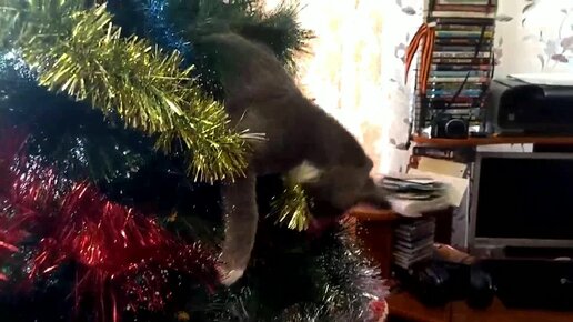 Кот на ёлке