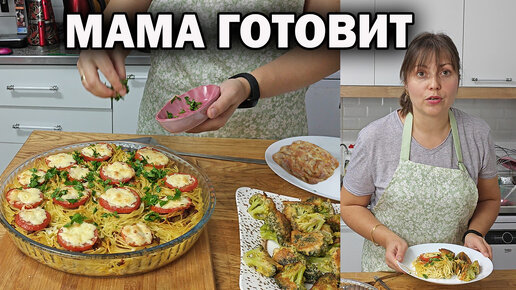 МАМА готовит удивительный УЖИН: спагетти-гнёзда, Фирменный яблочный кекс, брокколи #рецепты