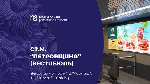 Московская линия(первая) Минского метрополитена. Ст. м. «Петровщина» (вестибюль). Выход из метро к ТЦ «Кирмаш», ТЦ «Титан», Mak.by