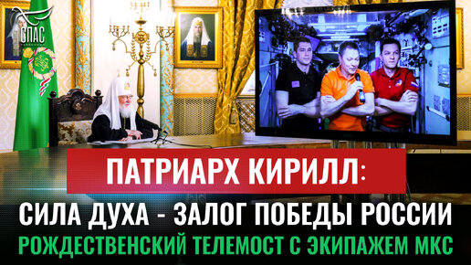 ПАТРИАРХ КИРИЛЛ: СИЛА ДУХА - ЗАЛОГ ПОБЕДЫ РОССИИ. РОЖДЕСТВЕНСКИЙ ТЕЛЕМОСТ С ЭКИПАЖЕМ МКС