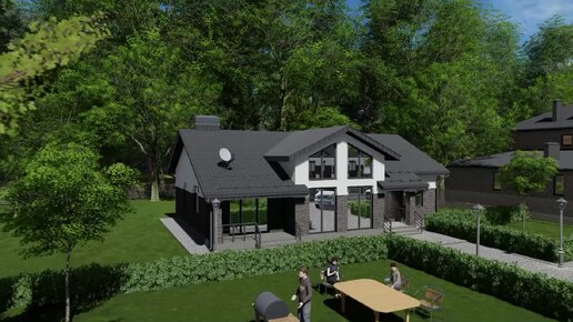 Презентация проекта одноэтажного дома площадью 120кв.м. с мастер спальней и вторым светом над гостиной