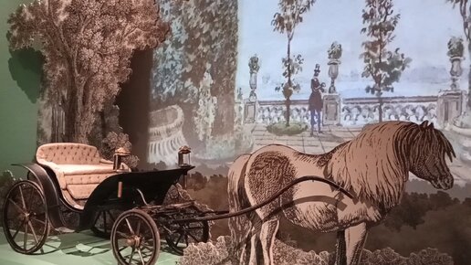 Москва, выставка в Историческом музее "Петергоф. Сокровища российской императрицы". Инсталляция с детской прогулочной каретой.