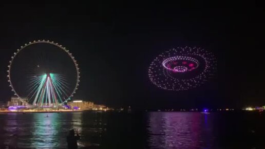 Летающая тарелка. Шоу дронов в Дубай Марине