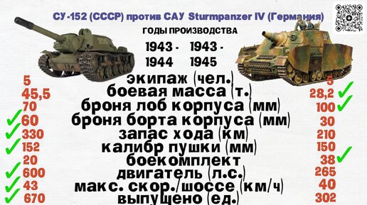 СУ-152 (СССР) против САУ Sturmpanzer IV (Германия)