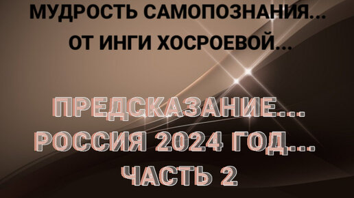 ПРЕДСКАЗАНИЕ... РОССИЯ 2024 ГОД... ЧАСТЬ 2... ИНГА ХОСРОЕВА...