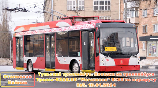 Тульский троллейбус. Поездка на троллейбусе Тролза-5265.00 "Мегаполис" №30 по маршруту №5. 10.01.2024