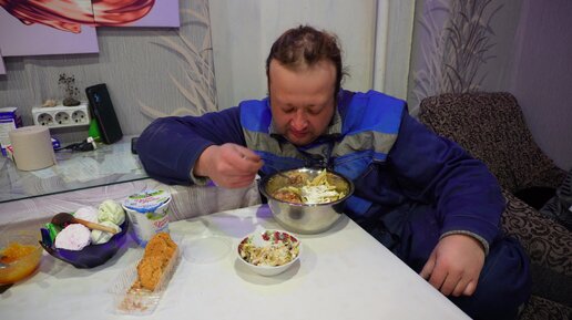 ужин в деревне за семейным столом и покраска акустических колонок в гараже