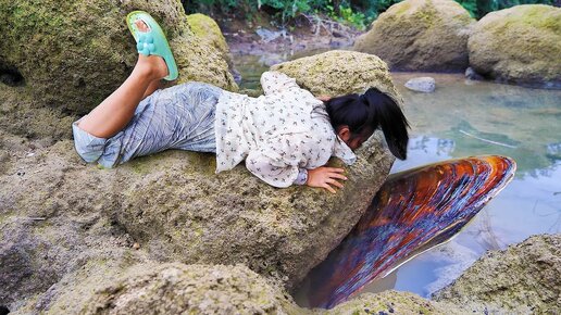 Удивительно! Девушка обнаружила огромную устрицу, спрятанную в трещине в скале, с красивыми пресноводными жемчужинами внутри.