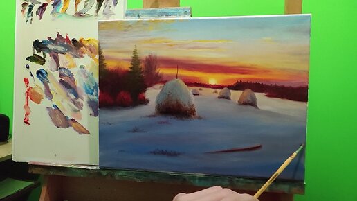 Учимся рисовать закат в тонах ближе к сумеркам|сельский пейзаж со стогами сена #живопись #art #пишем