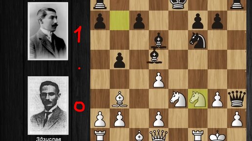 Малоизвестная, но очень крутая партия Акибы Рубинштейна: жертвуя черного ферзя ставит мат поляку Здзиславу Бельзицману в Варшаве, 1917, 0-1