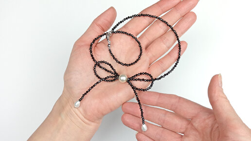 Собираем модный чокер с бантом из черной шпинели. Ссылка на набор материалов и описание под видео