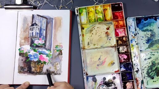 Рисуем улочку Италии. Полный процесс. Скетчинг акварелью