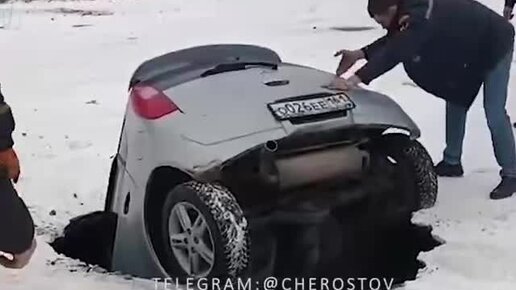 Средь бела дня автомобиль провалился под землю. Женщину водителя достали через багажник