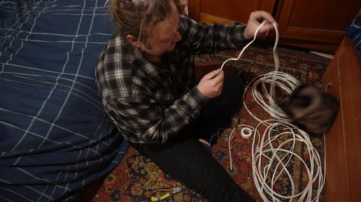 Без кошки не разобраться Деревенская добрая кошка помогает хозяину заниматься проводами в деревне Сибирь ПОДВАЛ ИЛЬИЧА
