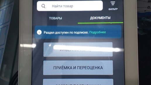 Эвотор, раздел доступен по подписке Не работает Приемка и Инвентаризация