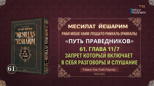 𝟔𝟏. Месилат Йешарим 11 | Запрет который включает в себя разговоры и слушание (7) | Рабби Лев Лэйб Лернер