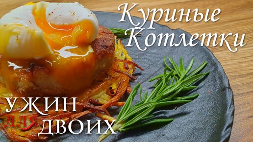 Куриная котлета с картофелем рости и яйцом пашот. Простое блюдо с красивой подачей