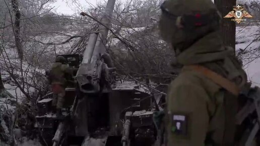 Расчет орудия 2С5 «Гиацинт-С» артиллерийской бригады Восточного военного округа из Приморского края наносит удары по пехоте противника
