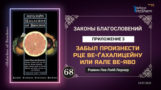 𝟔𝟖. «Забыл произнести Рце ве-ѓахалицейну или Яале ве-яво» | Законы благословений | Рабби Лев Лэйб Лернер