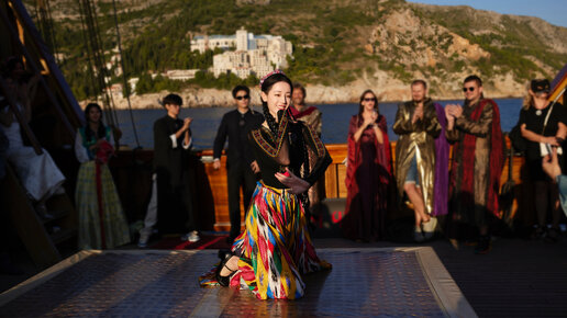 Дилраба Дилмурат на корабле в Хорватии исполняет национальный уйгурский танец