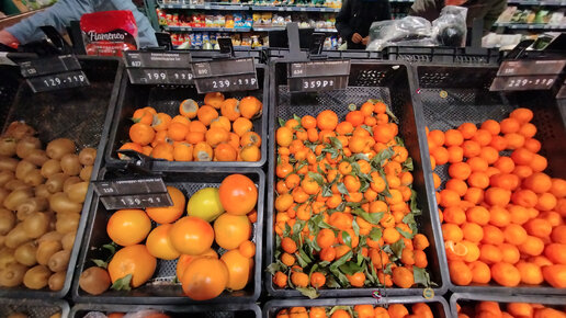 Видео: цены нашего городка, сравниваем цены на безумно дорогие мандарины и бросовые цены на киви