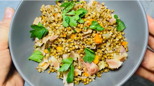 Рассыпчатая гречка с беконом в сковороде: всё блюдо быстро и просто готовится в одной посуде, никакой отдельной варки