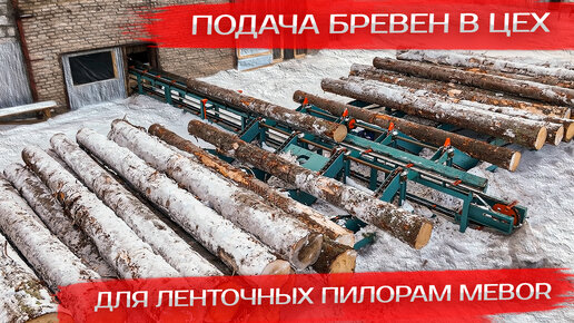 Подача бревен в цех для ленточных пилорам Mebor