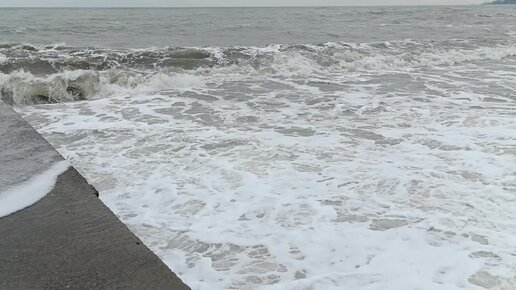 В Сочи наступила зима - температура 0 гр., море опять штормит. Пляж пансионата "Бургас" в Адлерском районе, 13 января 2024 года.