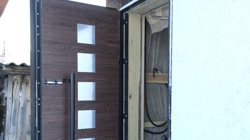 107 день. Строю Бытовку мечты - Чем отделать входную дверь? Самоклеющиеся плитка ламинат винил ПВХ цвет коричневый обзор отзывы