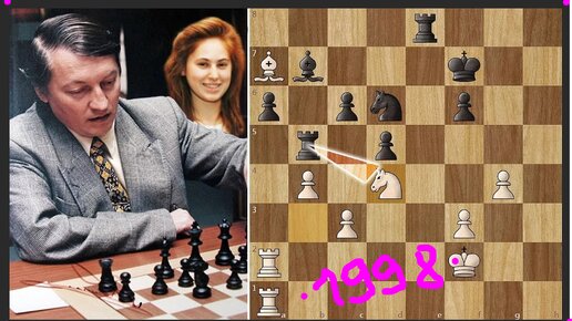 Анатолий Евгеньевич Карпов провел эту партию напряженно: снчала черными выигрывала Юдит Полгар, потом ничья, но взял победу Карпов (1998)