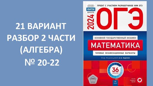 Вариант № 21 ОГЭ 2024 по математике из сборника Ященко 36 вариантов. Разбор 2 части (алгебра). № 20-22. Готовимся вместе к ОГЭ 2024!!!