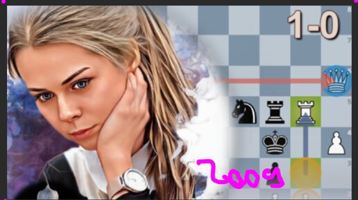 Надя Косинцева "поймала черного зайчика": играя белым цветом в суперфинале женского чемпионата РФ по шахматам, победила Лену Заяц, 2009, Мск