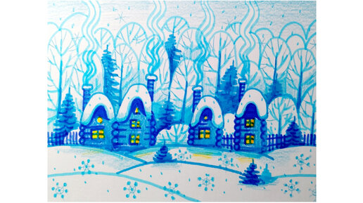 ❄️🌲🏘️Деревенька, нарисованная фломастерами и цветными карандашами.❄️😊❄️