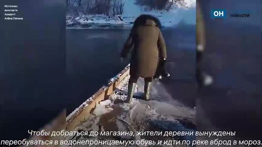 Жители деревни в Орловской области вынуждены переправляться через реку вброд в мороз