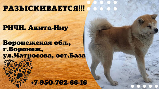 Пропала собака! РИЧИ. Акита-ину.Воронежская обл., г.Воронеж.