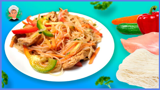 Домашний салат из фунчозы с куриной грудкой и овощами. Доступные ингредиенты!!!