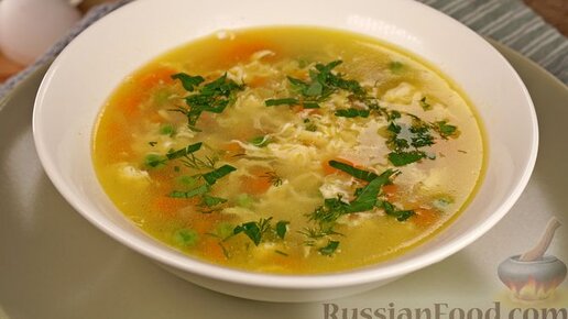 Быстро и просто. Яичный суп с горошком и кускусом